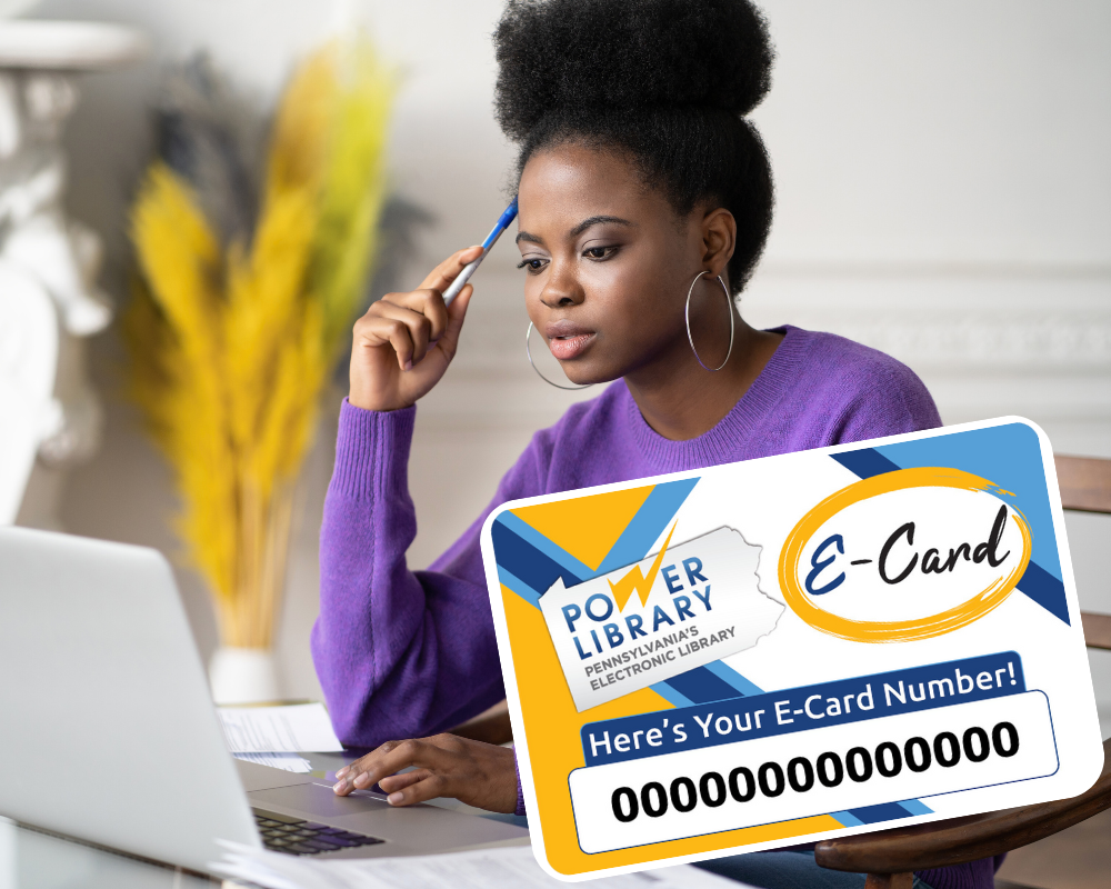 POWER Library’s E-Resources are free with your local PA library card or E-Card. Sign up for a free POWER Library E-Card to get connected. Please note that a local library card provides you with borrowing privileges, in-person services, etc.